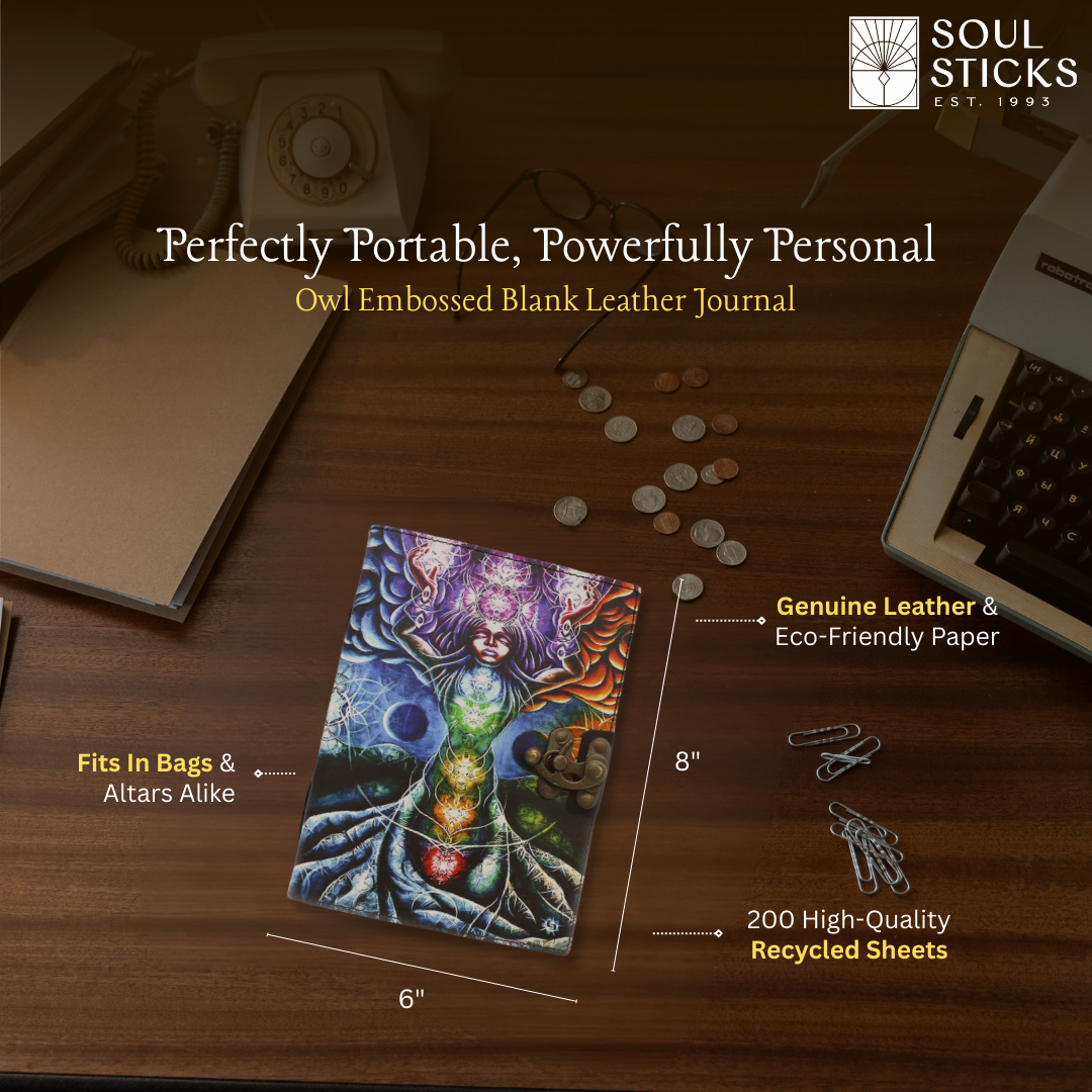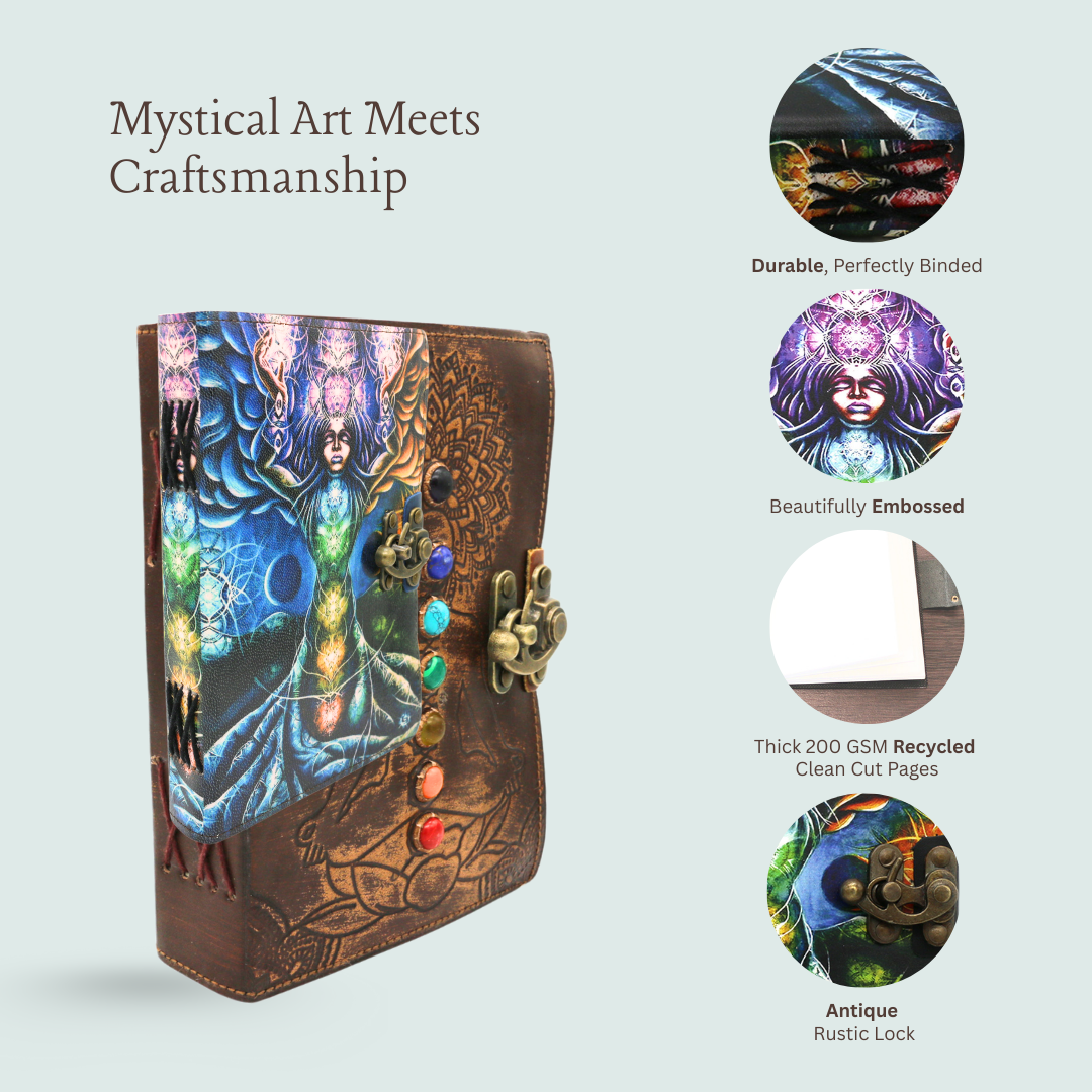 7 Chakras Tree Embossed Blank Leather Journal 6" x 8"
