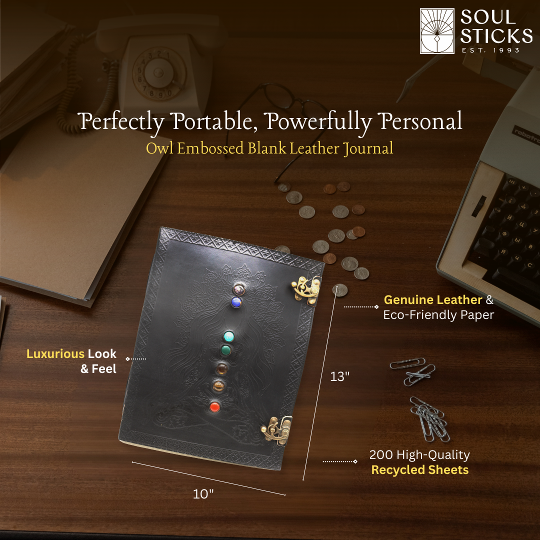 Black 7 Chakras Goddess Embossed Blank Leather Journal 10" x 13"