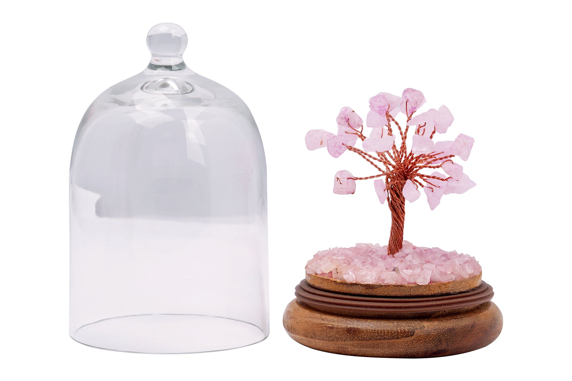 Each Dome Tree is a self-contained sanctuary, meticulously crafted by our partner artisans in India. Copper wiring – a natural conductor of energy – forms the sacred skeletal structure, cradling ethically sourced crystal ‘leaves’ (e.g., amethyst for tranquility, clear quartz for clarity) that cascade from branches to a moss-adorned wooden base. Encased in hand-blown glass, this eternal miniature forest: