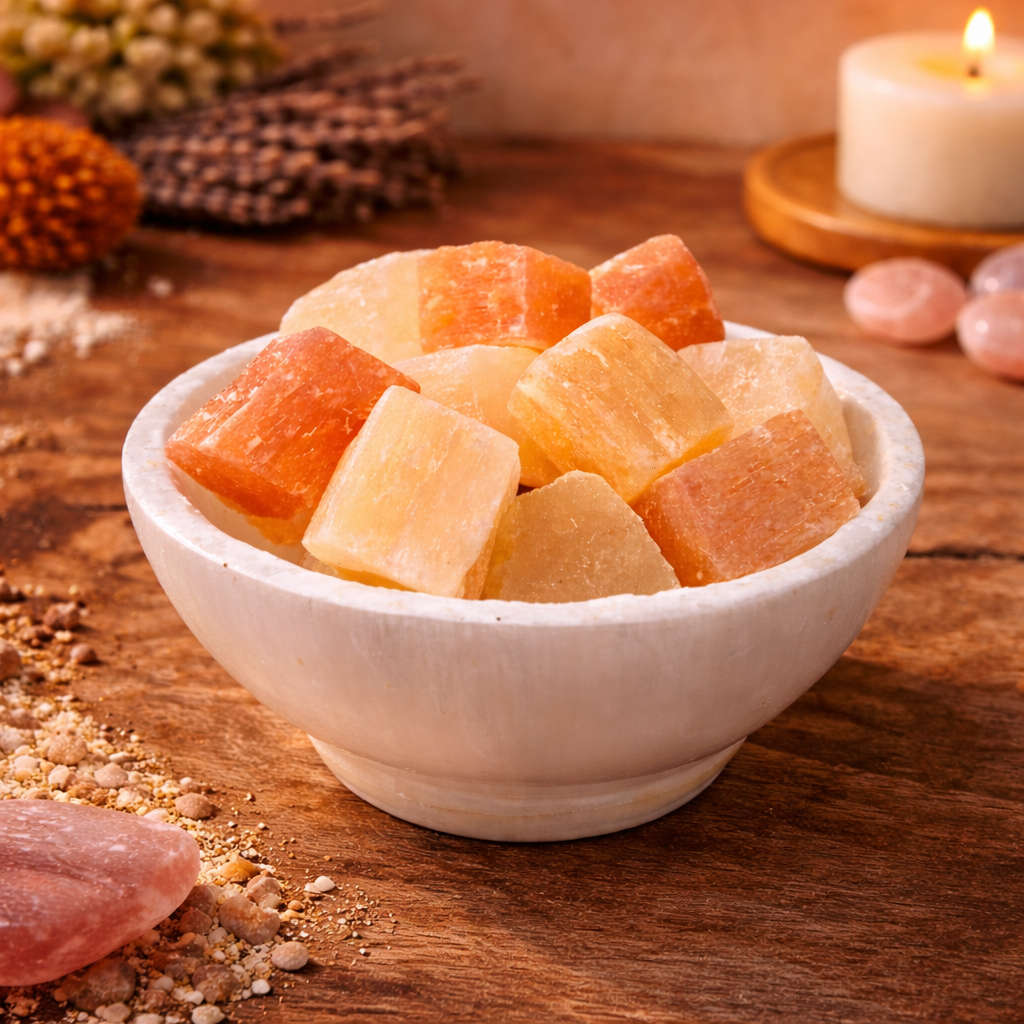 Add a warm, radiant energy to your space with this 3-inch Selenite Fire Bowl. Hand-carved from natural selenite, it provides a safe and stylish spot for small candles, tealights, or incense. Perfect for altars, meditation areas, or daily rituals, this bowl combines natural beauty with calming, cleansing energy to enhance your spiritual practice.